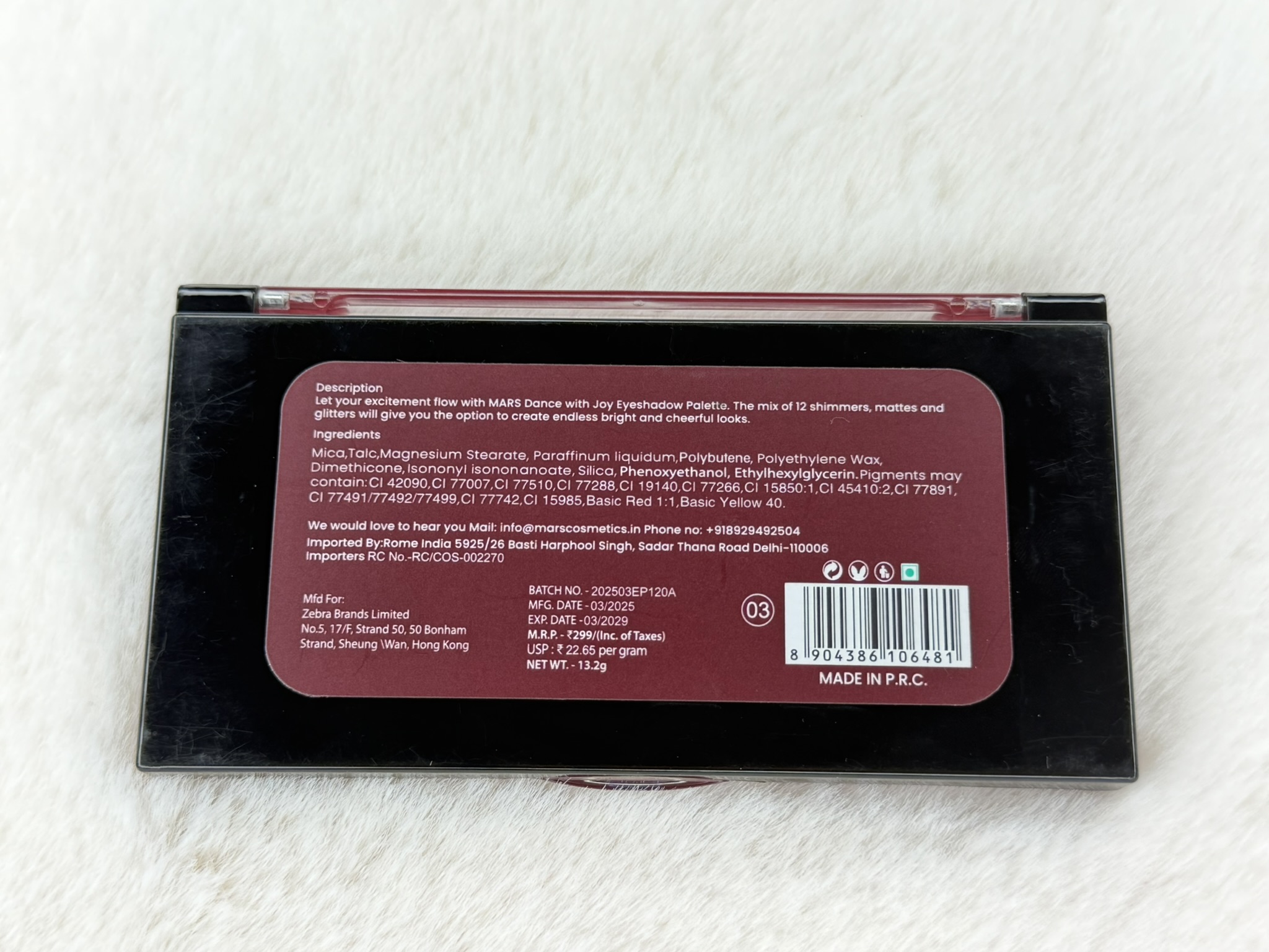 Let your exeitment flow with mars dance with joy eyeshadow palette. The mix of 12 shimmers,mattes and glittters will give you the option to create endless bright and cheerful looks.