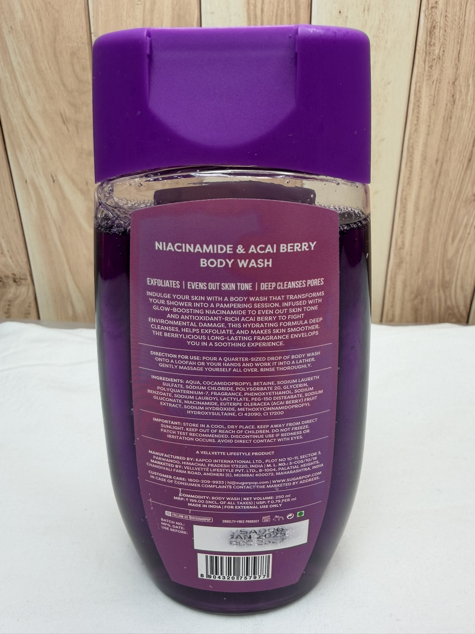 Sugar Pop Niacinamide & Acai Berry Body Wash 250ml